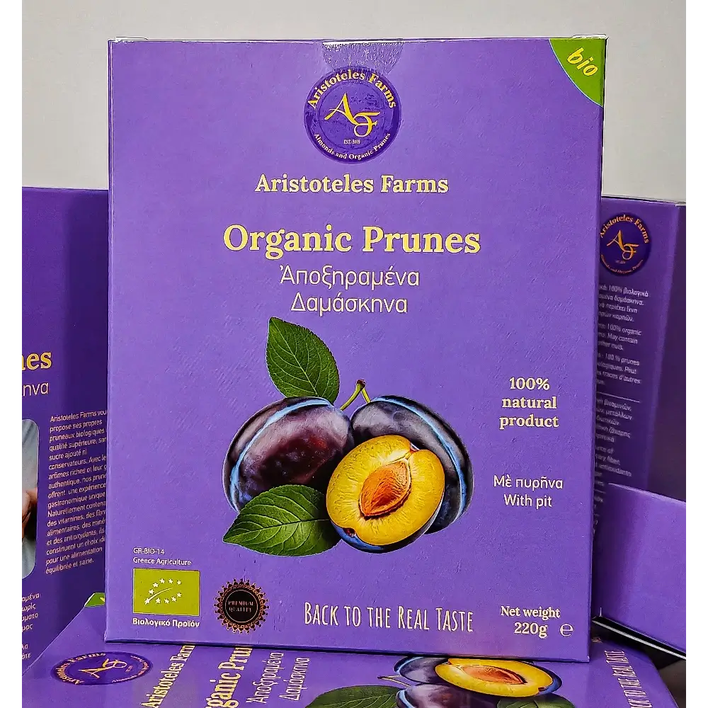 Η Aristoteles Farms, είναι μια επιχείρηση που ειδικεύεται στην παραγωγή βιολογικών αποξηραμένων δαμάσκηνων με πυρήνα, εξαιρετικής ποιότητας.Στην Aristoteles Farms, η παραγωγή βασίζεται σε αρχές οικολογικής διαχείρισης, βιωσιμότητας και σεβασμού στη φύση. Τα κτήματά καλλιεργούνται με μεθόδους που προστατεύουν το περιβάλλον, χωρίς τη χρήση χημικών ή συνθετικών προσθέτων, διασφαλίζοντας την αγνότητα και τη θρεπτική αξία των καρπών.