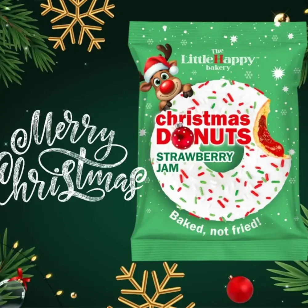 Τα Christmas Donuts Strawberry Jam από The Little Happy Bakery είναι εδώ — αφράτα, γεμιστά με λαχταριστή μαρμελάδα φράουλα και ψημένα, όχι τηγανισμένα