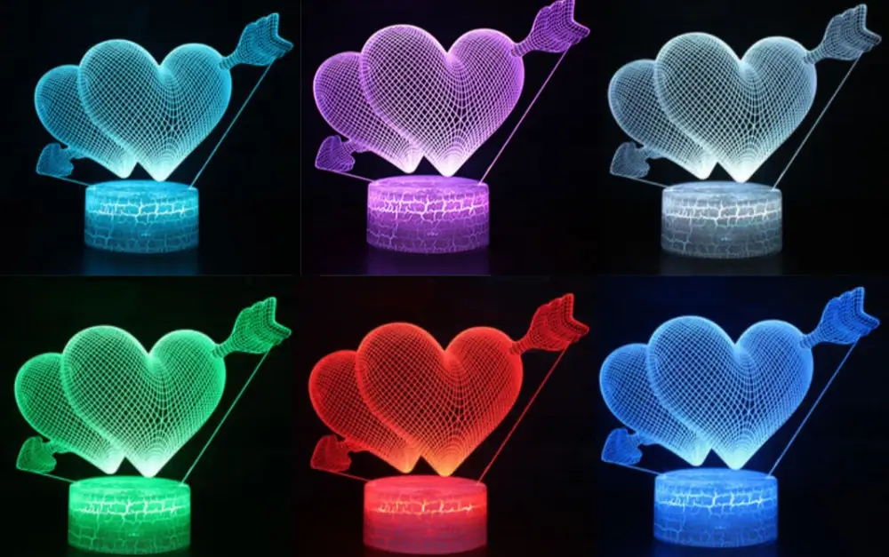 Φωτιζόμενη καρδιά 3D με βέλος ολογράμματος που φωτίζεται σε 7 διαφορετικά χρώματα! Λειτουργεί με αφή.