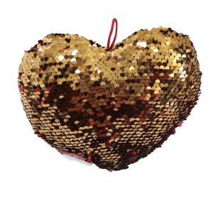 Μαξιλαράκι καρδιά με πούλιες διπλής όψης. Κόκκινο & χρυσό.