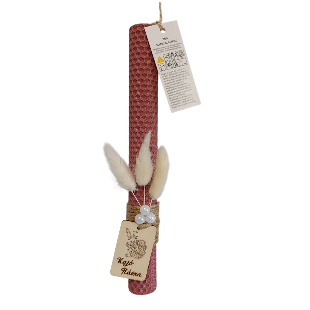 Πασχαλινή λαμπάδα από μελισσοκέρι(φύλλο κερήθρας), με στολισμό, 25χ3cm