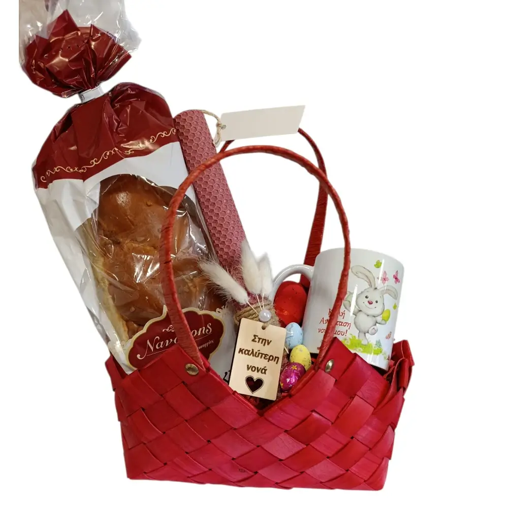 Η Πασχαλινή τσάντα με τσουρέκι κ λαμπάδα για την Νονά περιλαμβάνει: