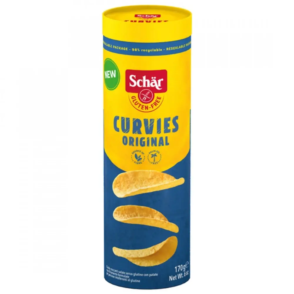 Το μόνο σίγουρο είναι ότι δεν μπορείς να φας μόνο ένα! Απολαυστικά τραγανά, με το χαρακτηριστικό καμπυλωτό σχήμα και την εθιστική γεύση τους, τα Τσιπς Πατάτας ‘Curvies’ χωρίς γλουτένη είναι απλά ακαταμάχητα! Το υπέροχο γευστικό σνακ που είναι ιδανικό για κάθε είδους στιγμή, από ένα aperitivo μέχρι γενέθλια και κάθε είδους γιορτή. Με λιγότερα λιπαρά και θερμίδες και ακόμη περισσότερες φυτικές ίνες.